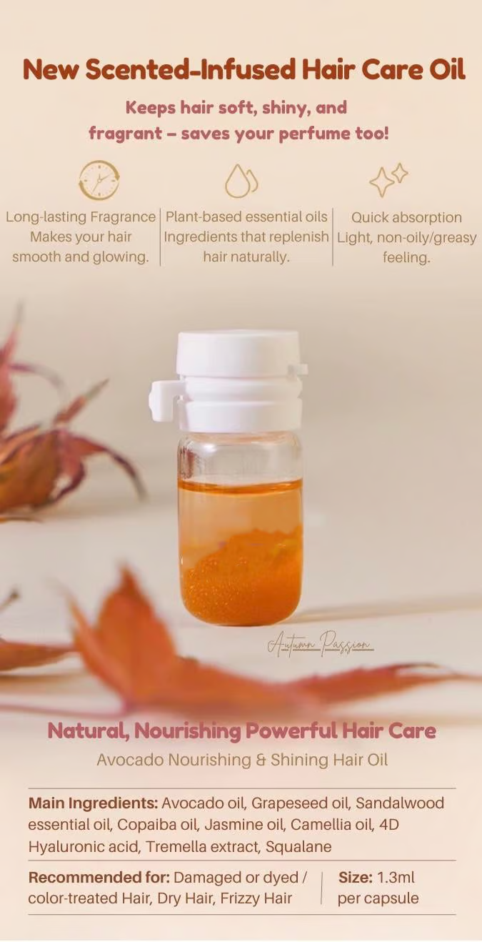 Each capsule is packed with plant-based ingredients like avocado oil, camellia oil, and hyaluronic acid to deeply hydrate, repair damage, and lock in moisture while leaving a long-lasting fragrance.