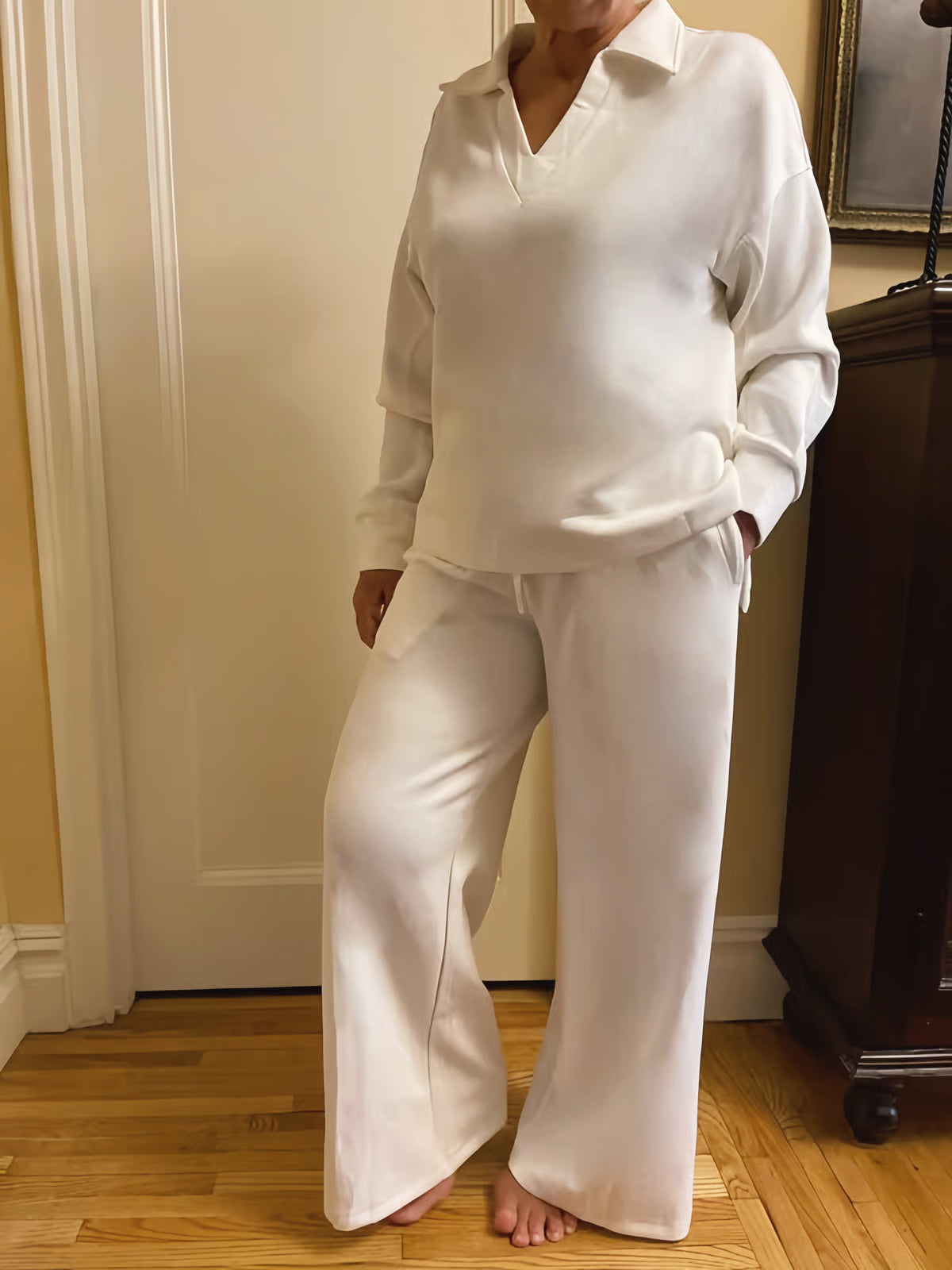 This matching set pairs a soft long-sleeve top with wide-leg pants for the perfect balance of comfort and style. Designed to flatter while keeping you relaxed, it takes you from lazy mornings to last-minute plans without a second thought.