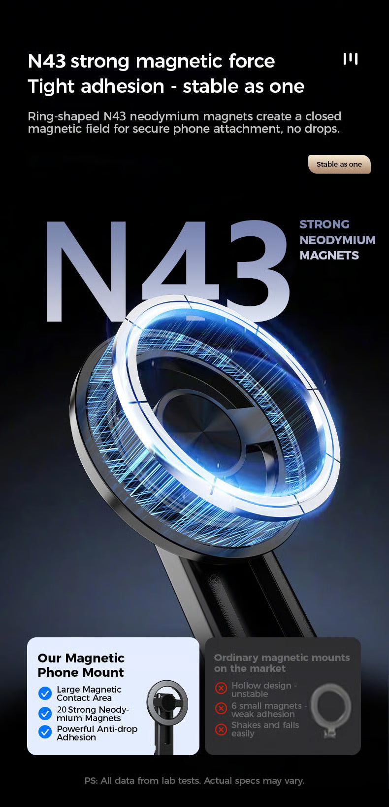 - Snap your phone onto the magnetic mount and adjust the 360° swivel to find your best angle.