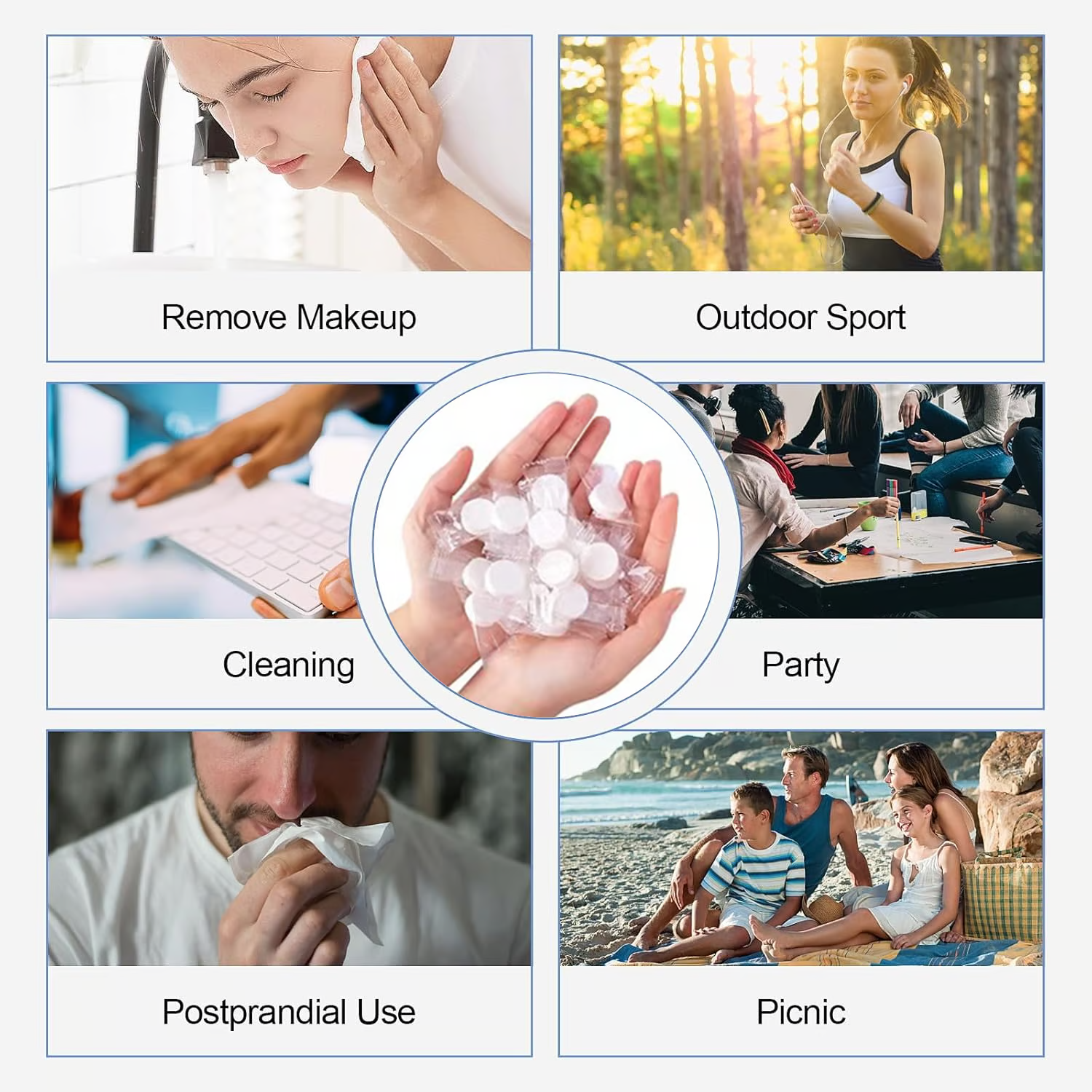 Small but MightyLightweight and travel-ready, these tablets fit in any bag or pocket. Whether you're on the road, at the gym, or wiping sticky hands at a picnic, they deliver fresh, reliable hygiene in a snap—without waste or hassle.