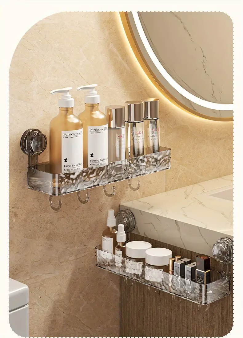 Create Space Where You Need It MostThis wall-mounted rack secures tightly with high-strength suction, giving you instant storage without drilling. Its grooved design keeps items dry and stable, ideal for wet areas like bathrooms and kitchens.