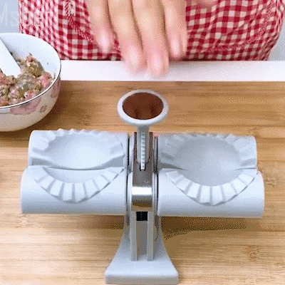 - Press & seal. Close the double head and press firmly—two perfectly crimped dumplings are ready to cook.