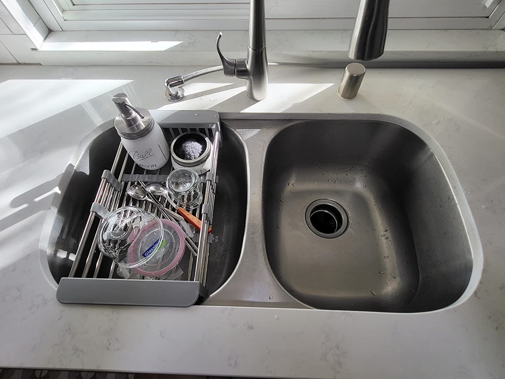Simplify your sink setup and enjoy a cleaner, more efficient kitchen with a rack that adjusts to your needs.