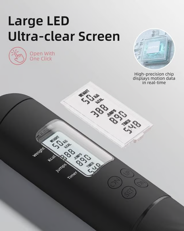 🌟 Tracks jumps, time, and calories with smart LCD display