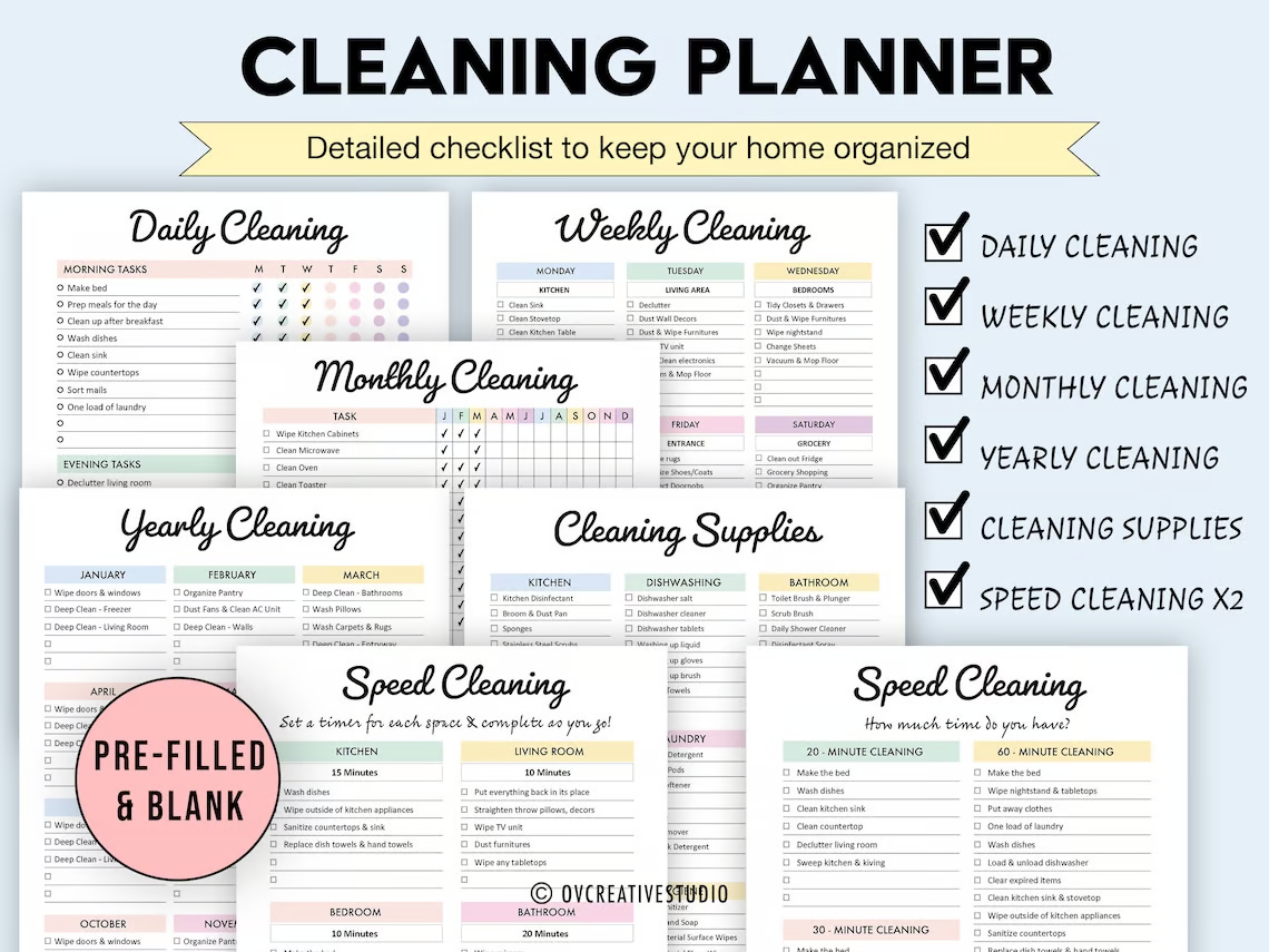 ✔ Daily, Weekly, Monthly, and Yearly Cleaning Schedules