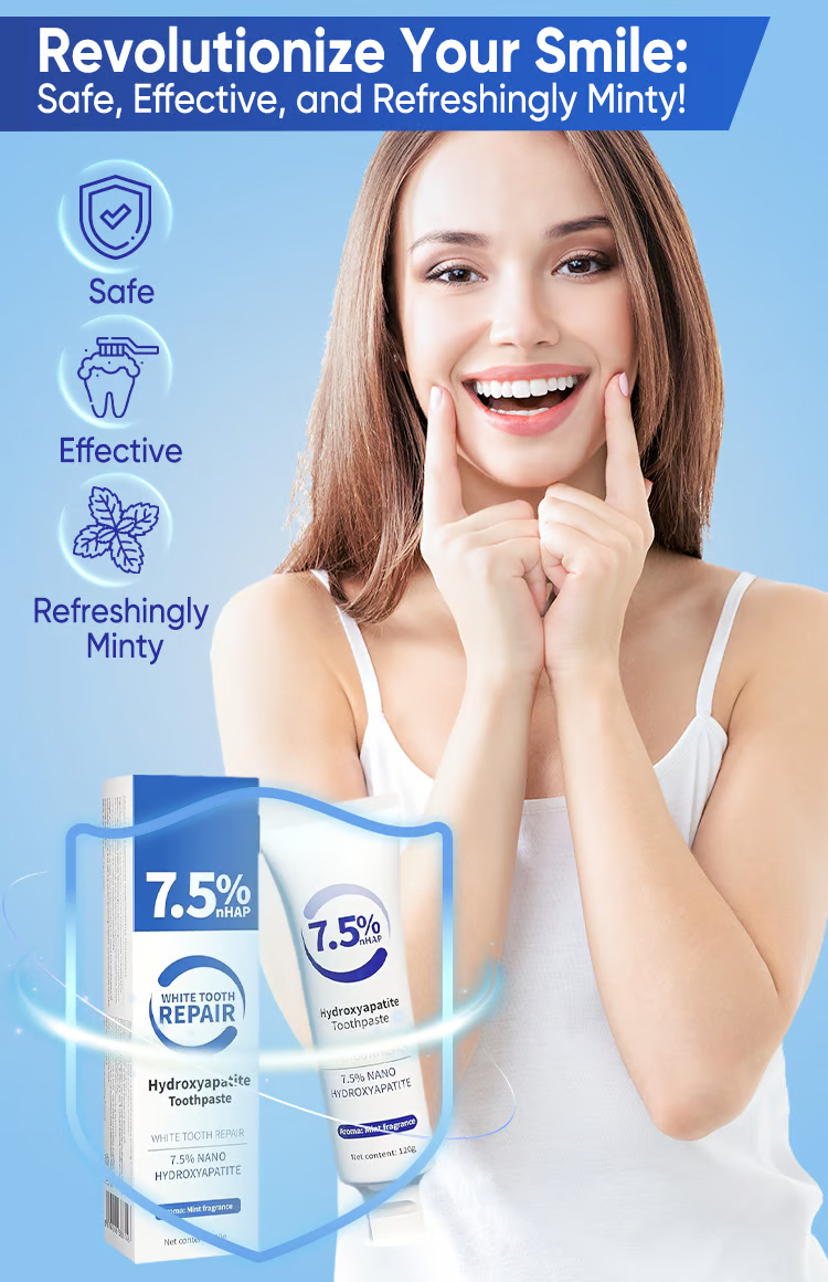 ★★★★★ Jordan C."After a recent health scare, I started overhauling everything in my routine—diet, skincare, even toothpaste. I read about how hydroxyapatite is a natural, biocompatible alternative to fluoride, and honestly, I was skeptical.But after using this for two months, my teeth have never felt better. No sensitivity, no weird film on my tongue, and they look whiter even without any whitening strips. My breath stays fresher throughout the day, and I feel like I’m doing something genuinely good for my body."