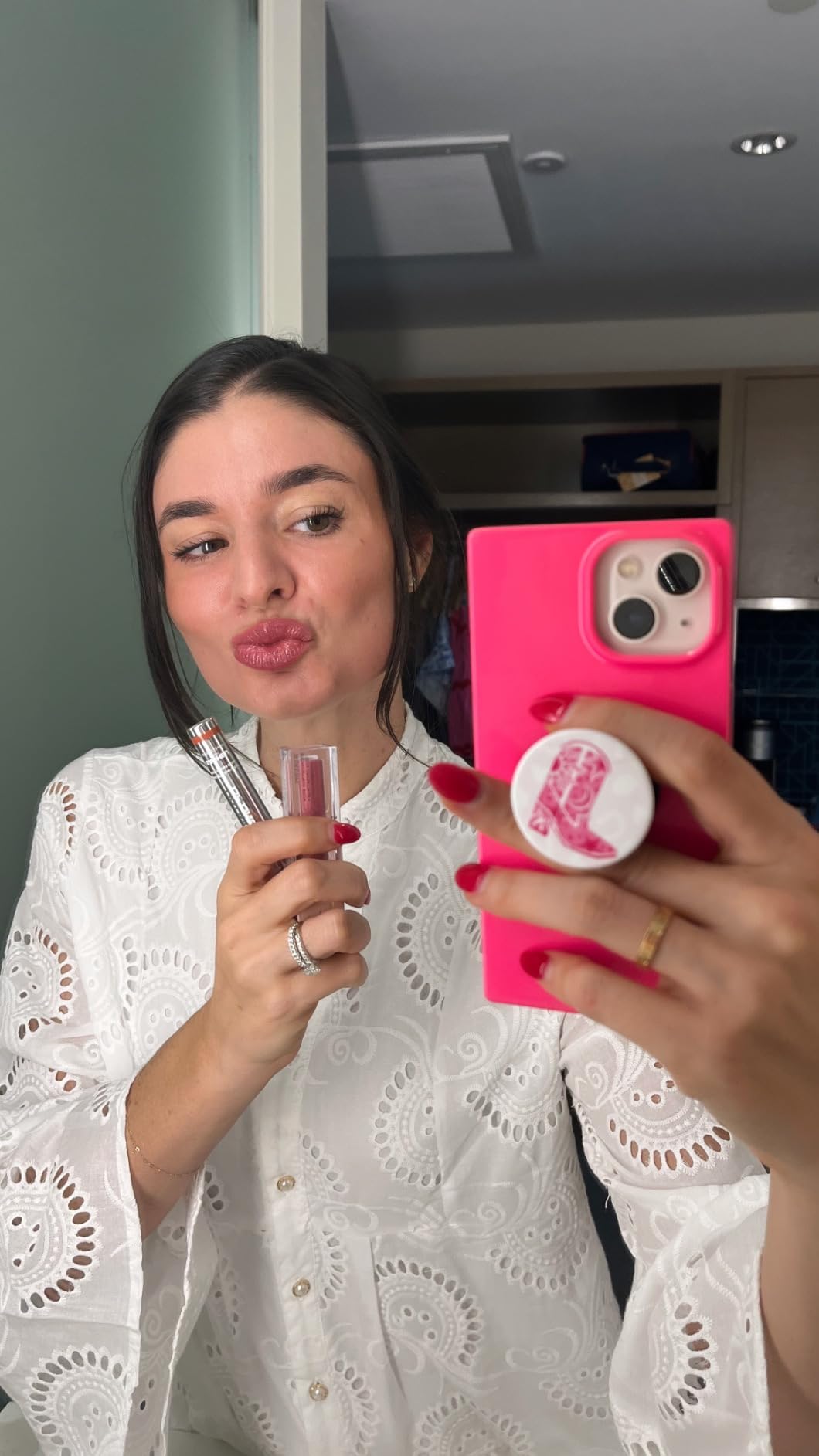 - Use the precision-tip applicator to trace your lip line in an even layer. Let it set for 10–20 minutes.
