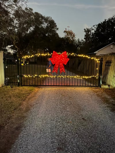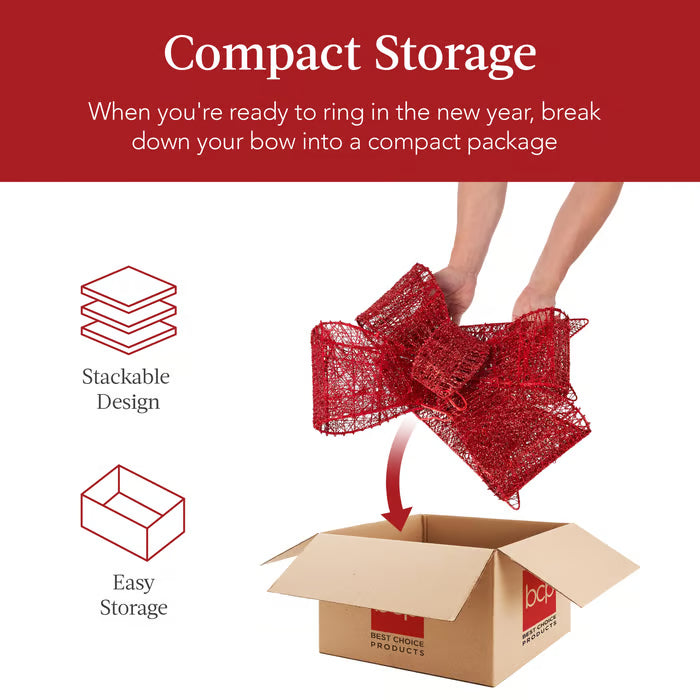The Lit Christmas Bow brings instant holiday magic to any home, glowing with hundreds of brilliant red LED lights that create a warm, festive sparkle.