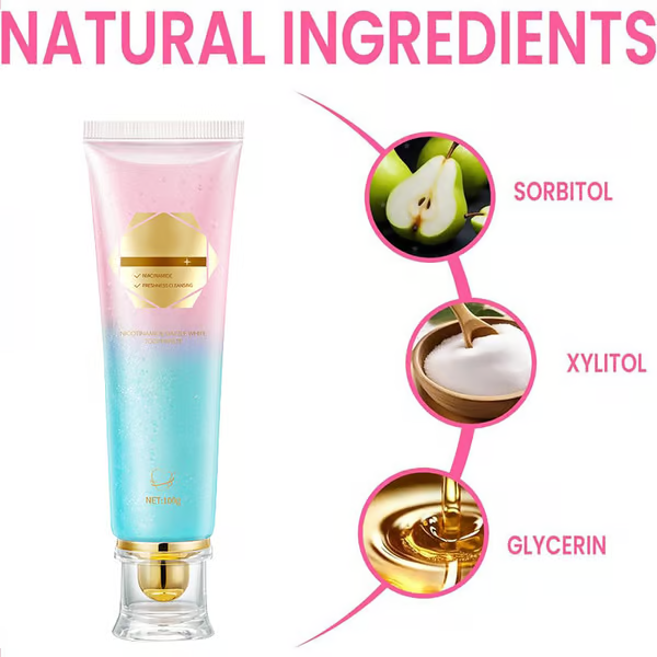 Say goodbye to yellow stains and bad breath with the Niacinamide Whitening Toothpaste. This enamel-safe formula uses Vitamin B3 to dissolve plaque, remove years of stains from coffee, tea, wine, and smoking—and brighten teeth naturally.