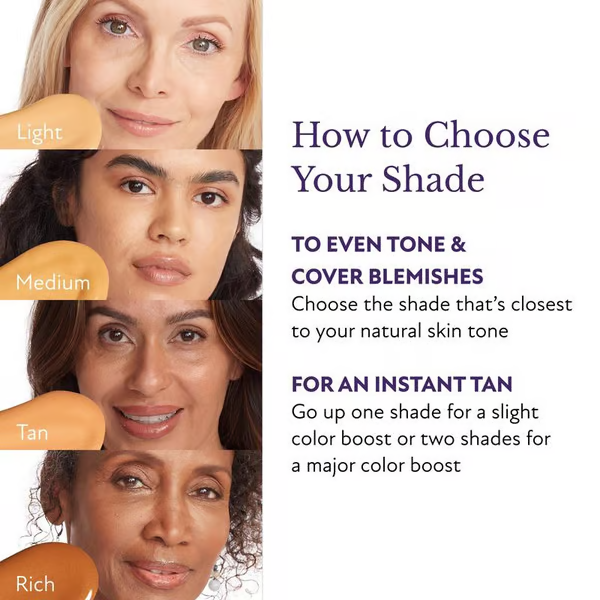 - Blend onto areas like arms, legs, or chest using hands or a body brush.