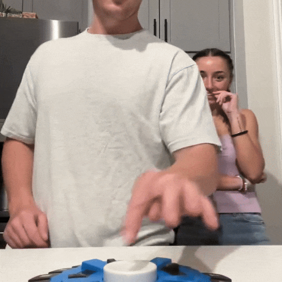 Choose a theme card for the round and press the center of the board to start the 10-second timer.