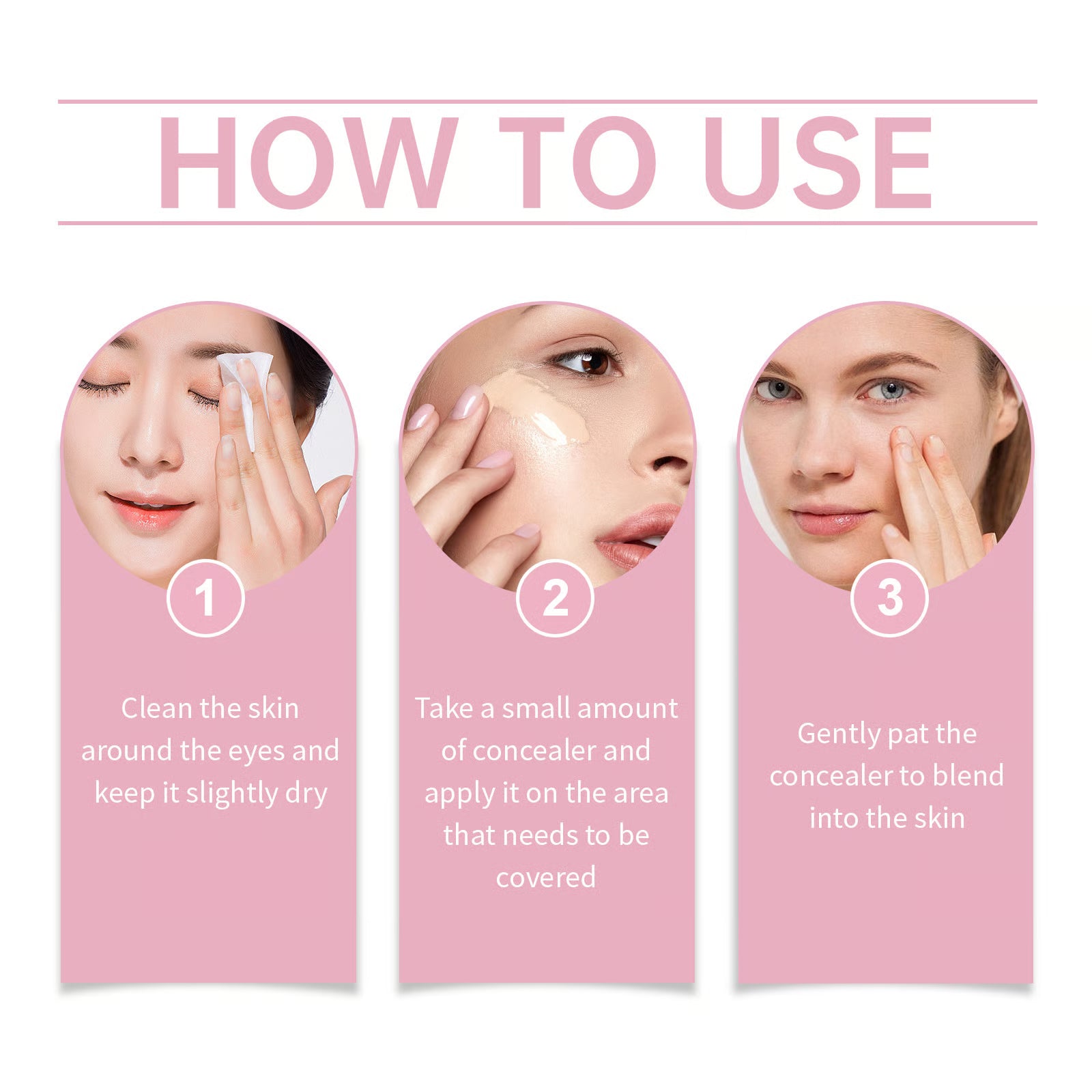 Gently tap a small amount under each eye using your fingertip, brush, or sponge. Blend outward until it melts seamlessly into the skin.