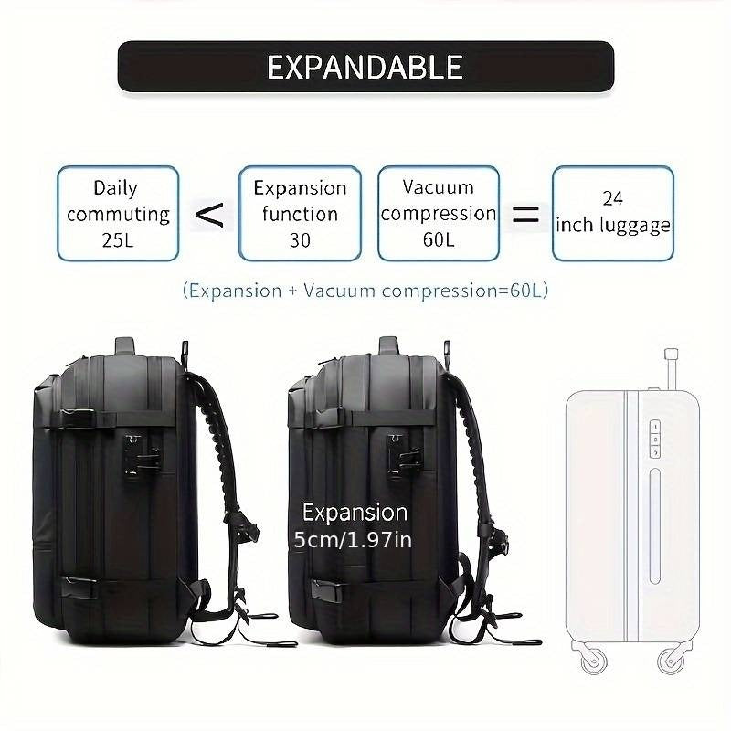 It expands from 25L to 60L, giving you flexibility for short trips, long vacations, or daily commuting.